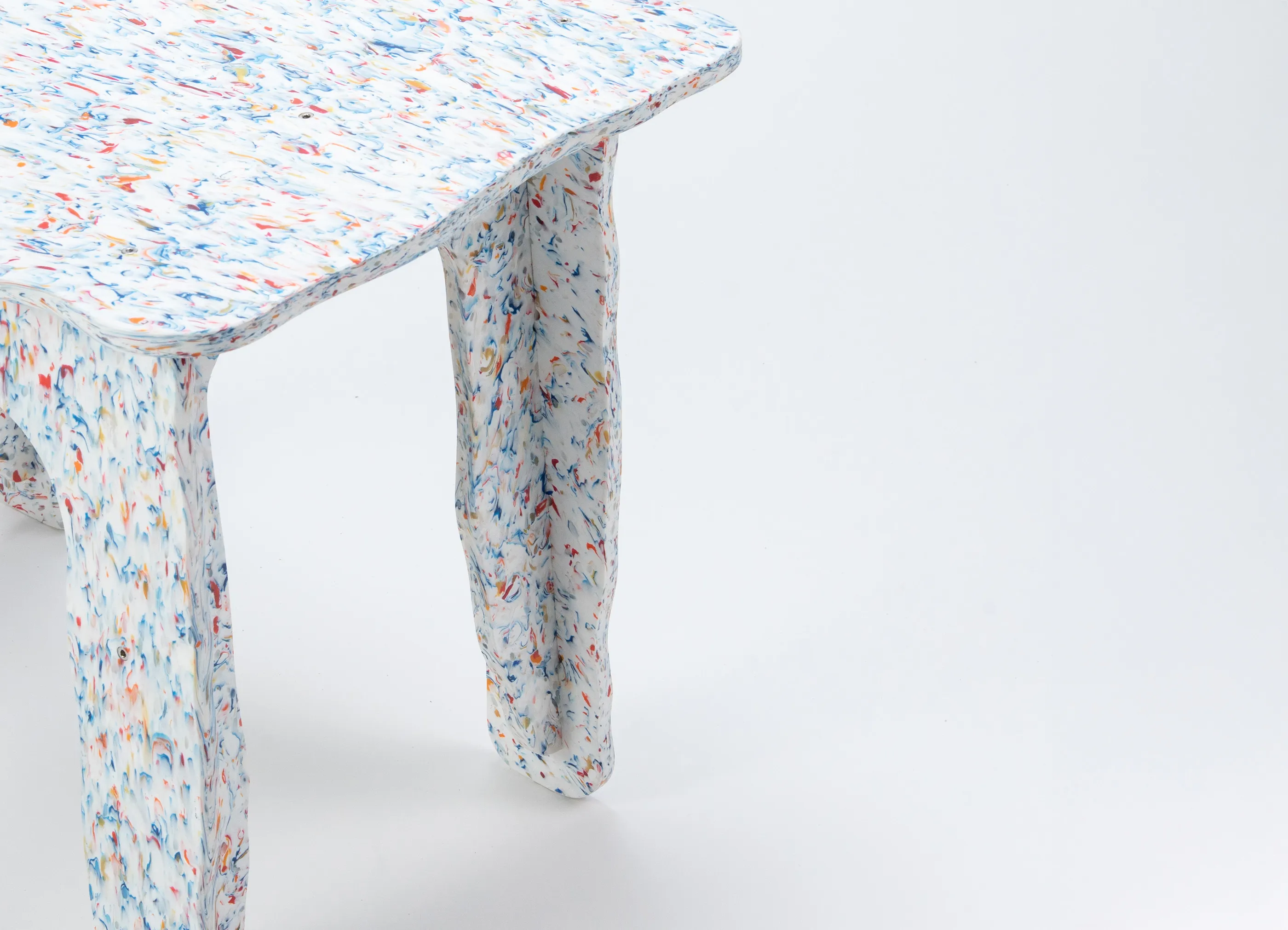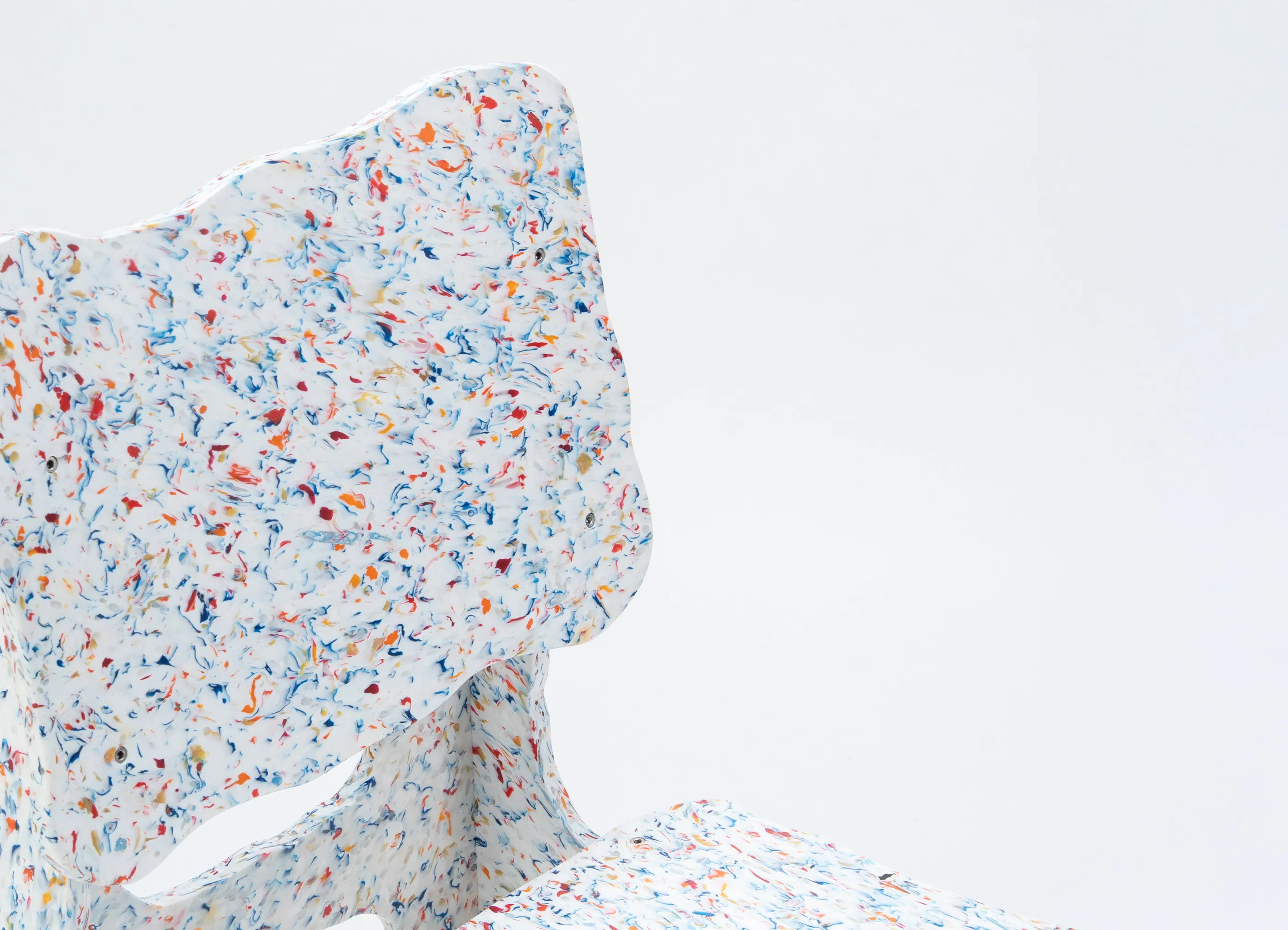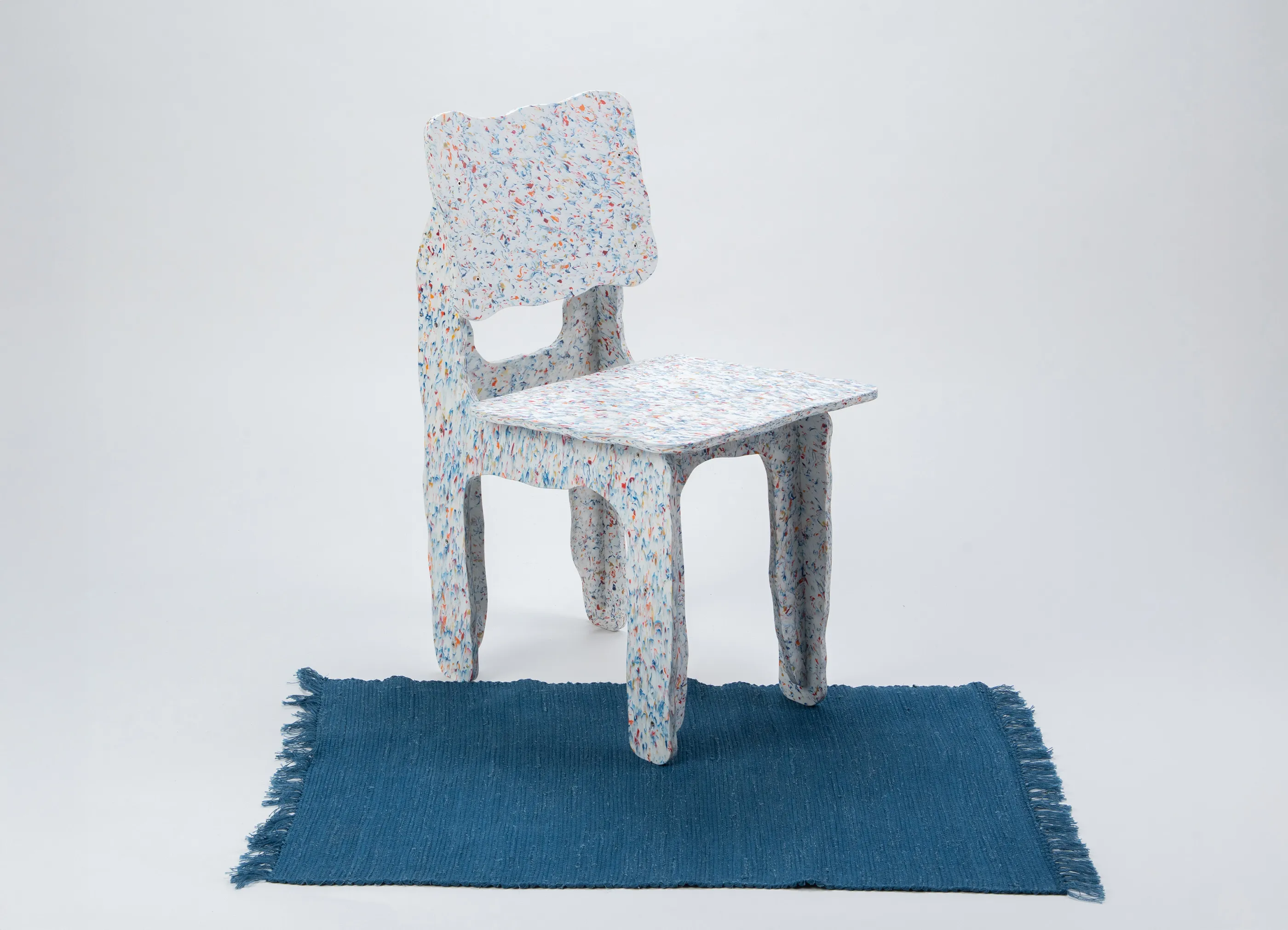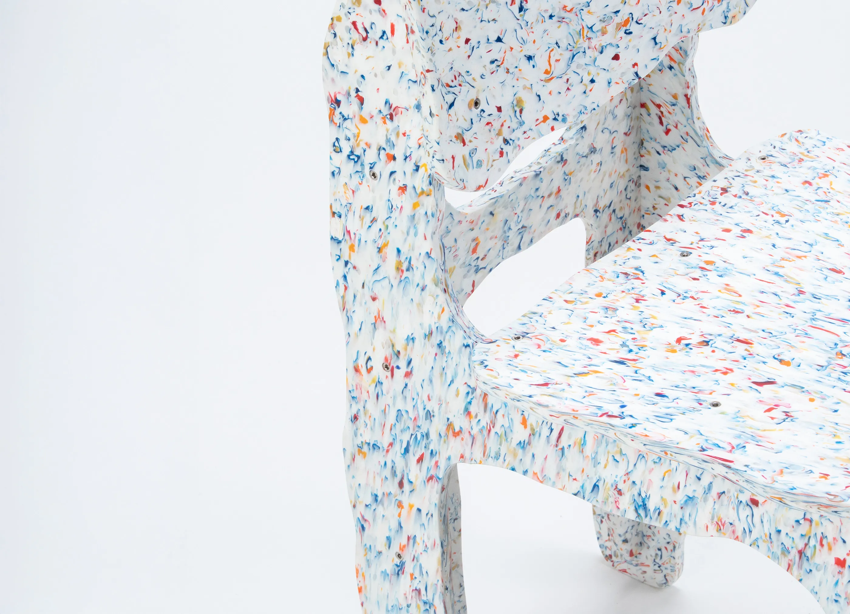 Max Lambによってデザインされた、833個の再生ボトルキャップ、ガロンキャップ、歯磨き粉チューブを組み合わせて作られた組み立て式のフラットパックチェアです。Wasted製品は、様々な廃棄物をデザインの基盤として手作りされています。