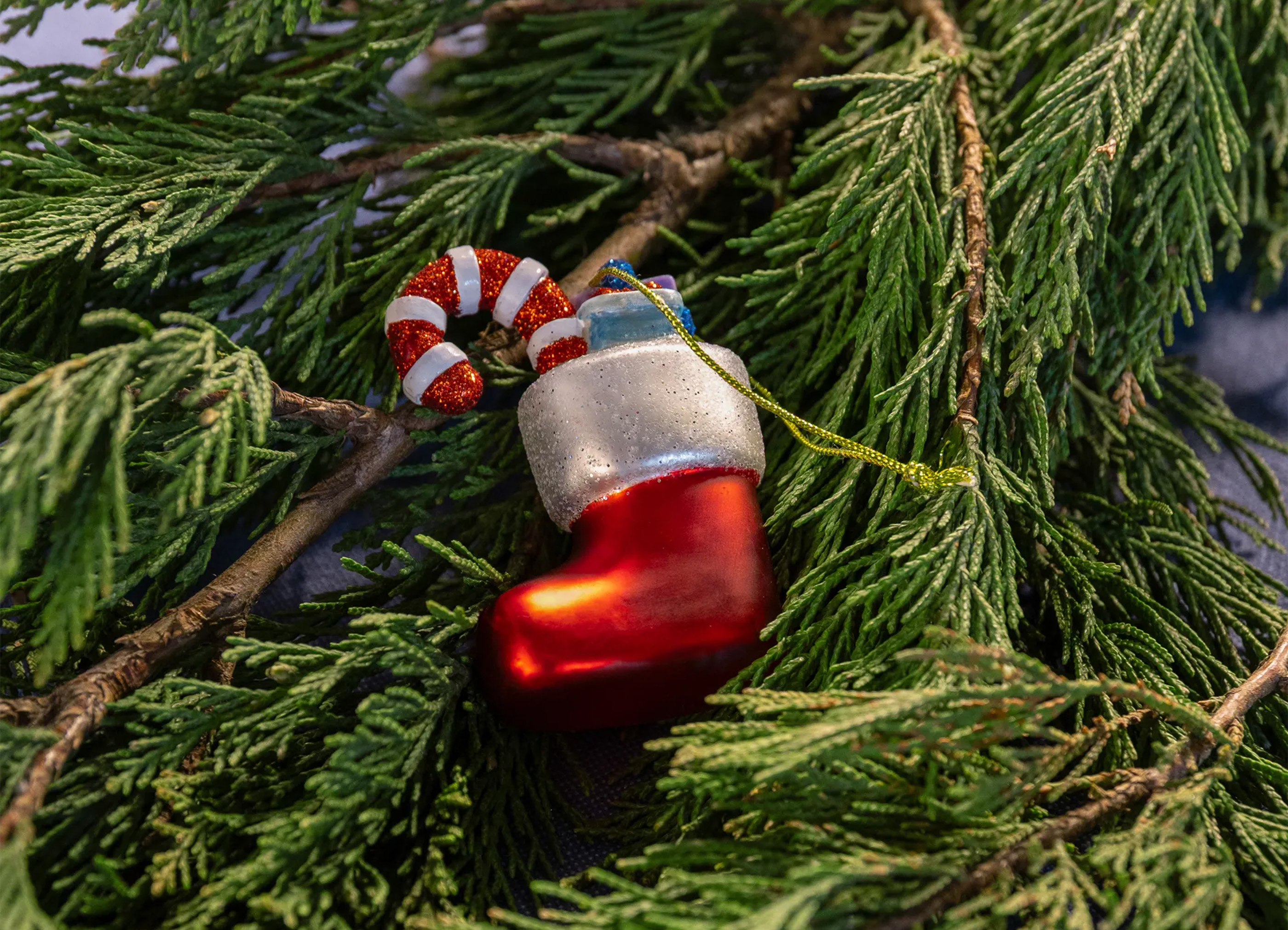 昔ながらの温かみのあるクリスマスソックスから着想を得た、ノスタルジックなオーナメント。