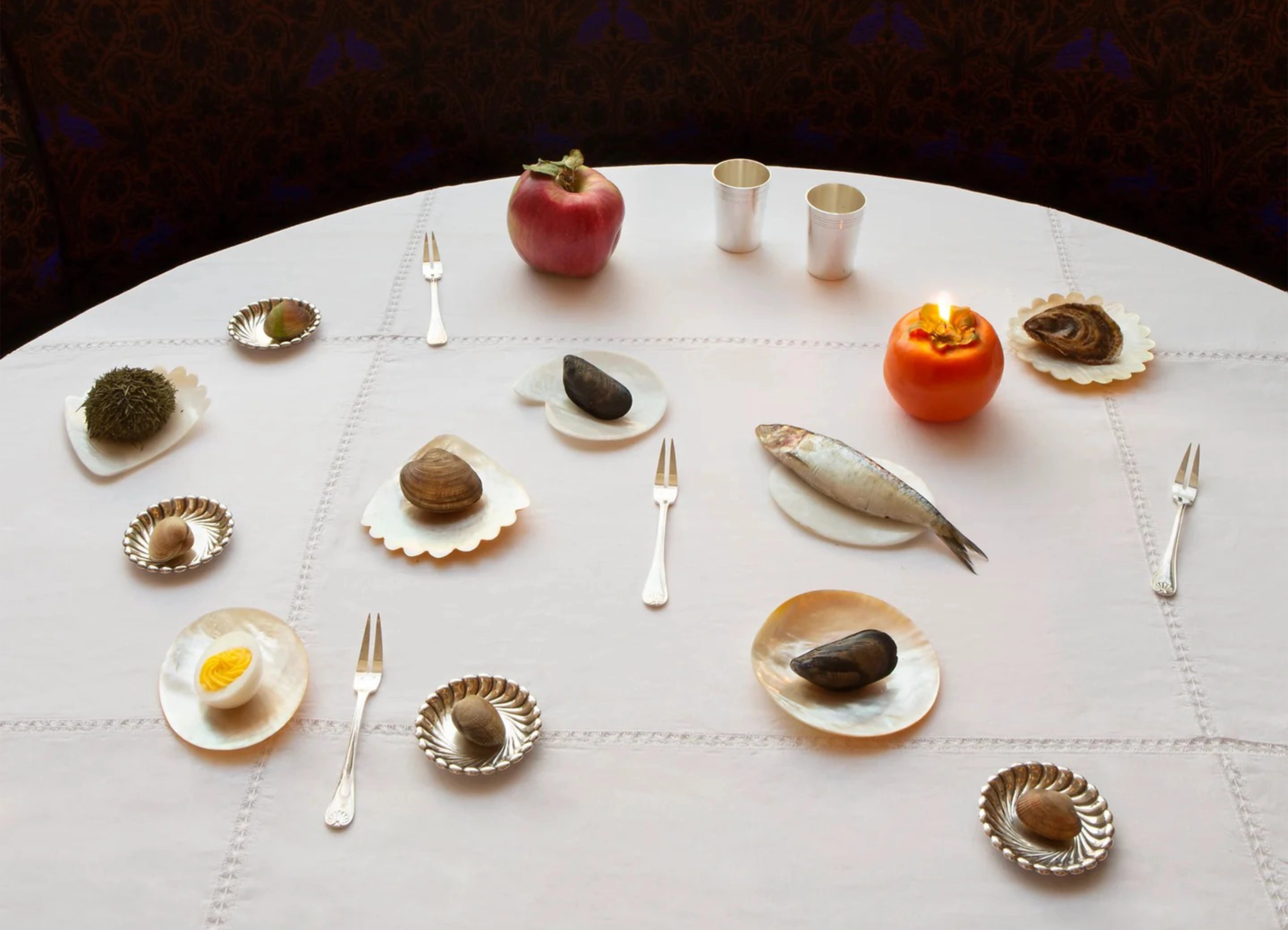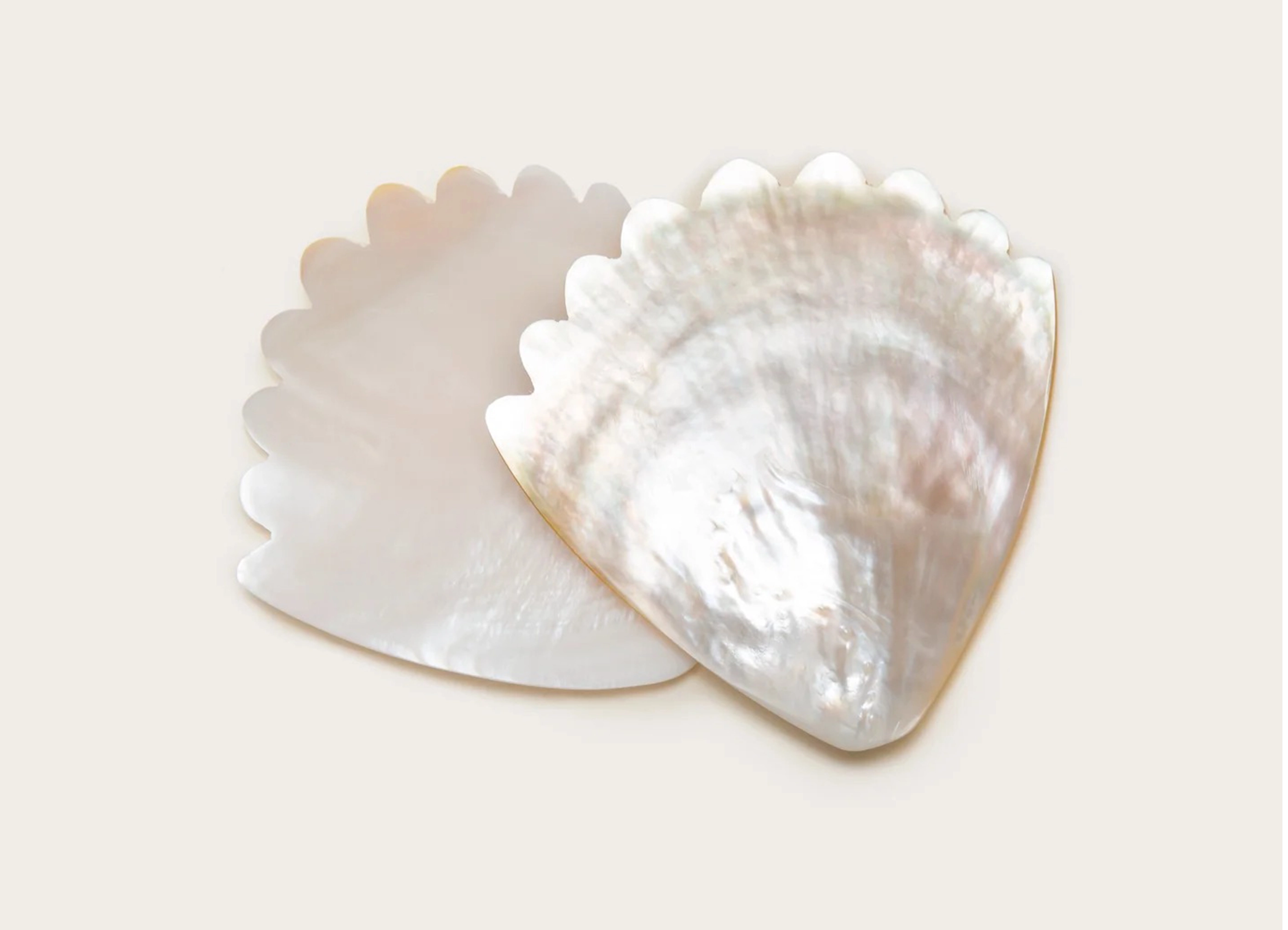真珠層を手作業で彫り上げたホタテ貝のプレートです。