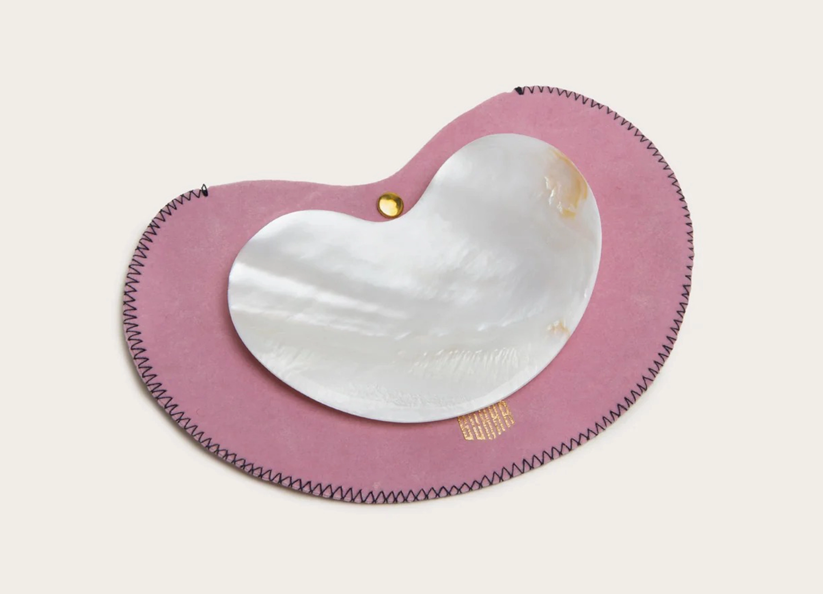 真珠層を手作業で彫り上げた豆型のプレートです。