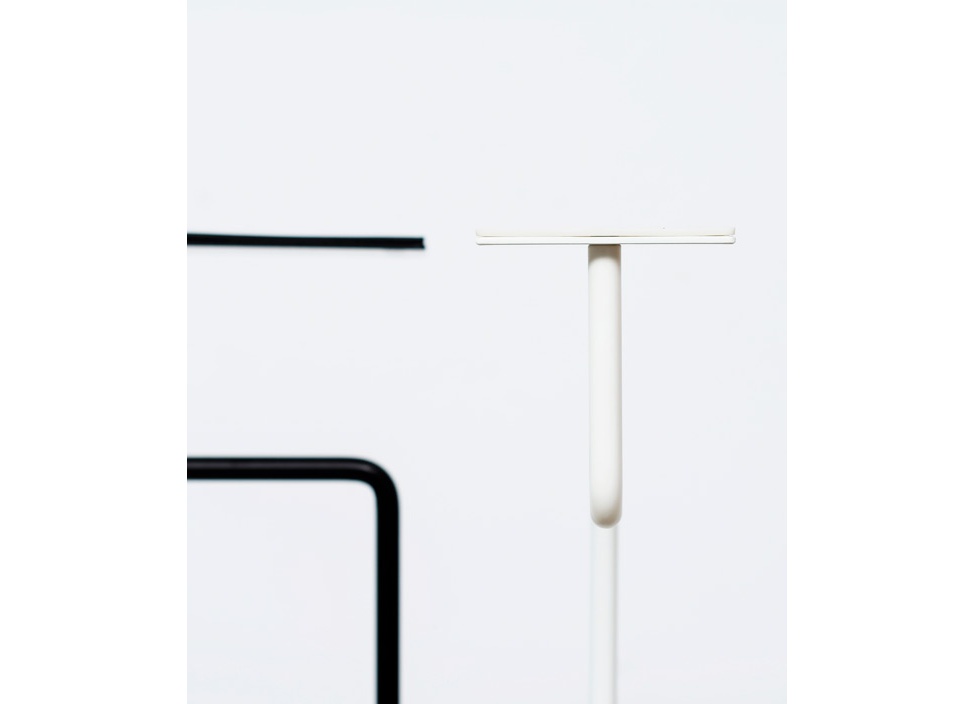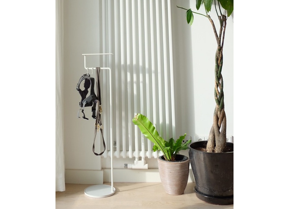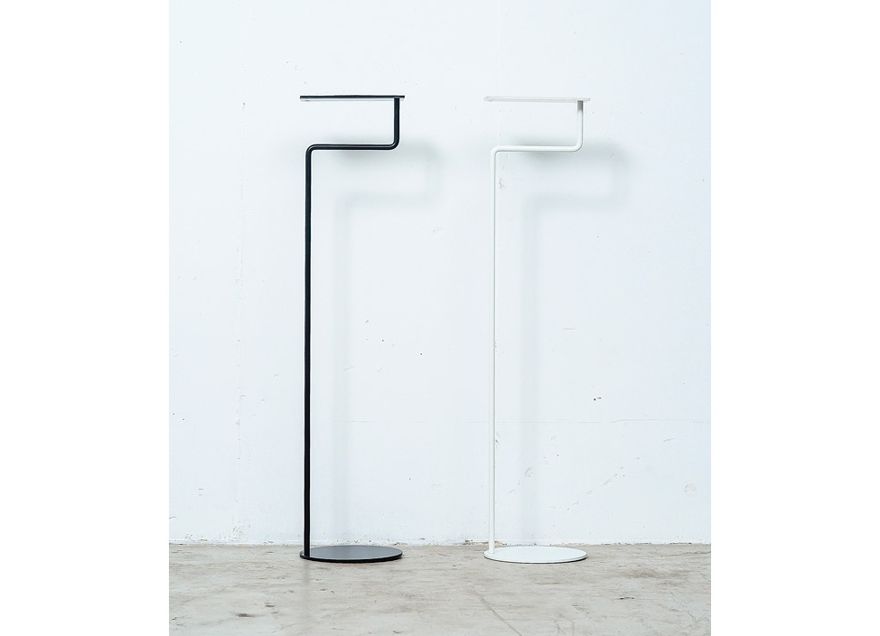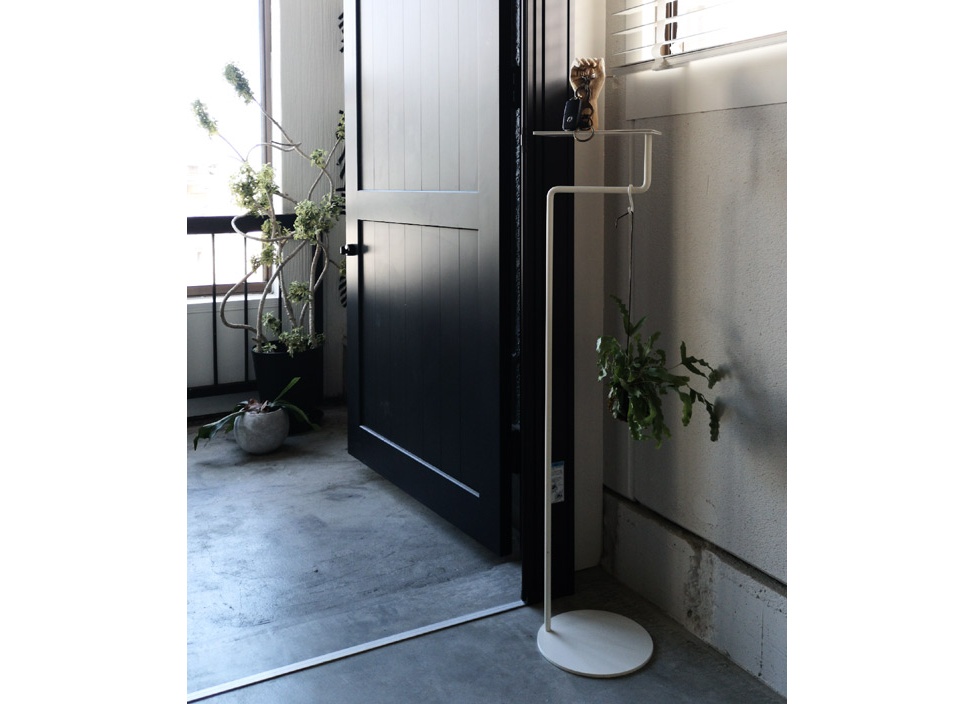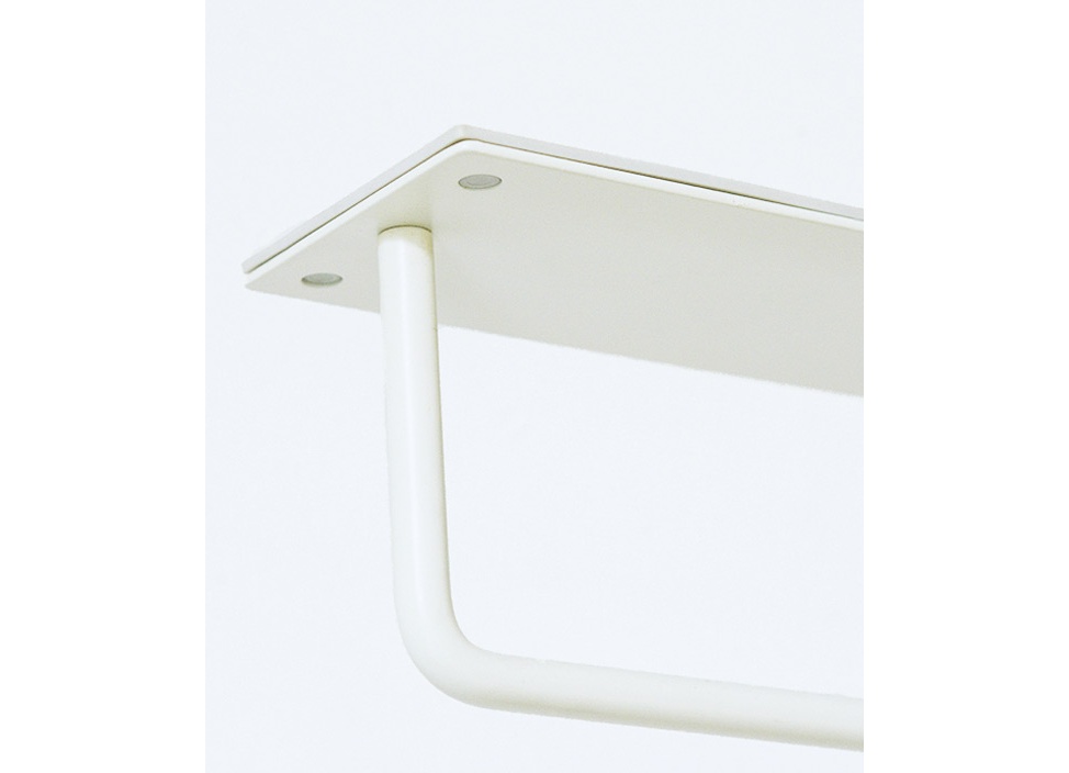 使う人のアイデア次第でさまざまな用途で使えるマルチホルダー。まっすぐ伸びたストレートラインから直角に曲げることで、ものを掛けられるハンギング部分を形成、上部にはトレーを配置し、ものを乗せることもできます。使用していないときも美しいカタチをしたマルチホルダーは、使用用途を決めつけないフレキシビリティーなアイテムです。