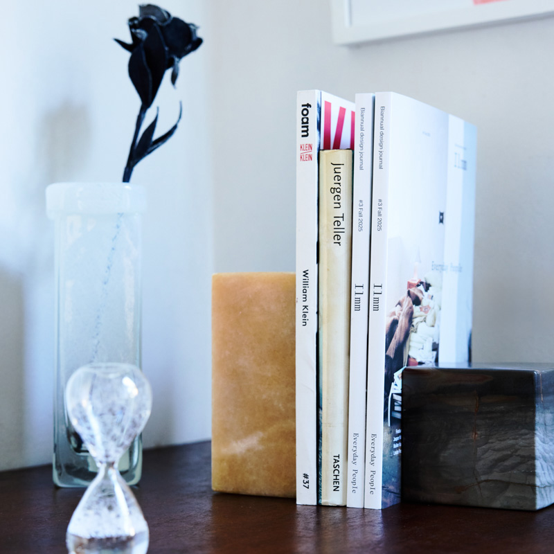 ページをめくるたびに、新しい視点と出会い、デザインに対する思考が更新されていく——それは単なる情報収集ではなく、美意識のトレーニングでもあります。そしてこの本の価値は、読み終わった後にも続きます。テーブルの上に置かれたDesign Journal、あるいはブックエンドで立てかけられた背表紙——それらは空間の中で、知的な空気を醸成します。本が可視化するのは、そこに住む人の関心と価値観です。
