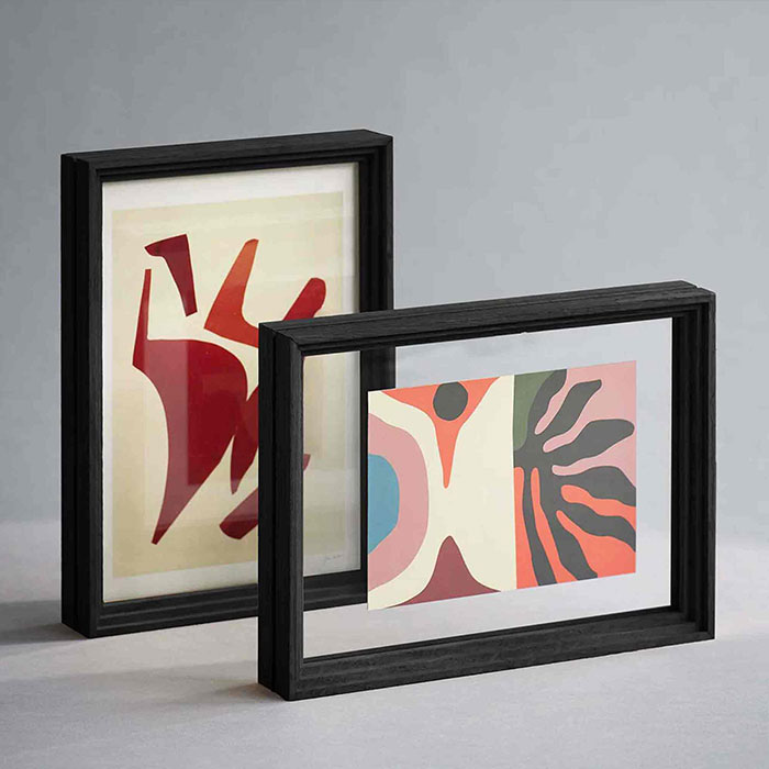 フレーム、アクリル板、ラバーバンド——わずか3つの要素だけで成立するフレームがあります。<MOEBE>の「スタンディングフレーム」は、黒い輪郭で空間を区切り、その内側に収められた写真やポスターを確かに主役にします。縦にも横にも置ける柔軟性。最小限の構造だからこそ、イメージそのものの存在感が静かに際立ちます。黒という色はその構造の明快さをいっそう強調しています。