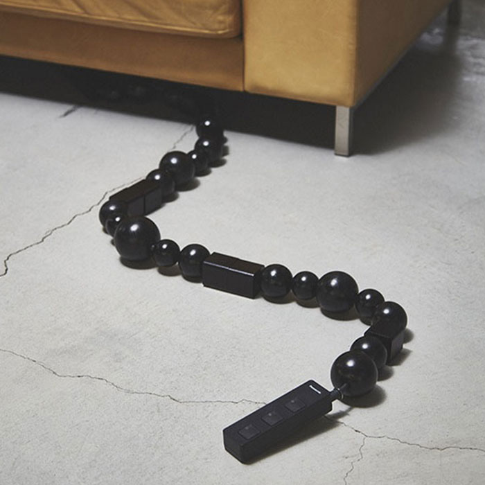 通常は隠されるべき配線を、あえて空間の一部として扱うデザインがあります。<BLESS>の「CABLE JEWELRY multi plug」は、黒いケーブルと黒いプラグに装飾的な要素を加えることで、実用品を美しいオブジェクトへと変換。機能的なものを美しくすることは、生活のあらゆる細部に意識を向けることを意味します。